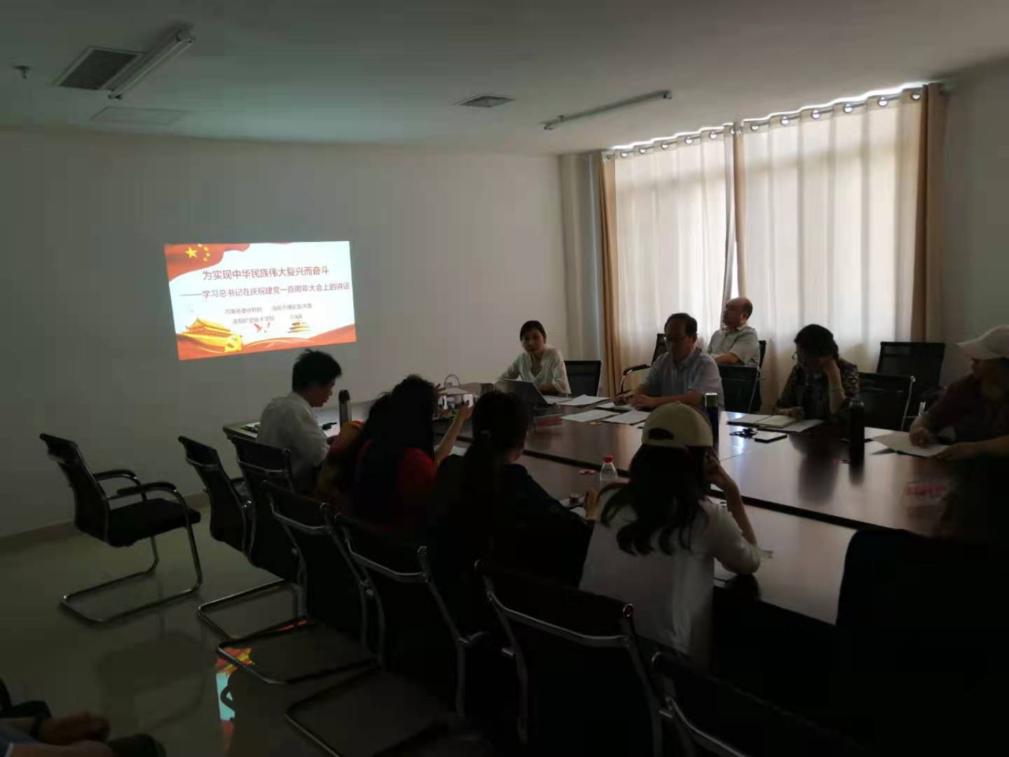 7月8日下午,思政部党支部在会议室召开“学习习近平总书记在庆祝中国共产党成立100周年大会上的重要讲话精神”专题学习会。会议由党支部书记吕海霞主持。全体教职工参加学习。