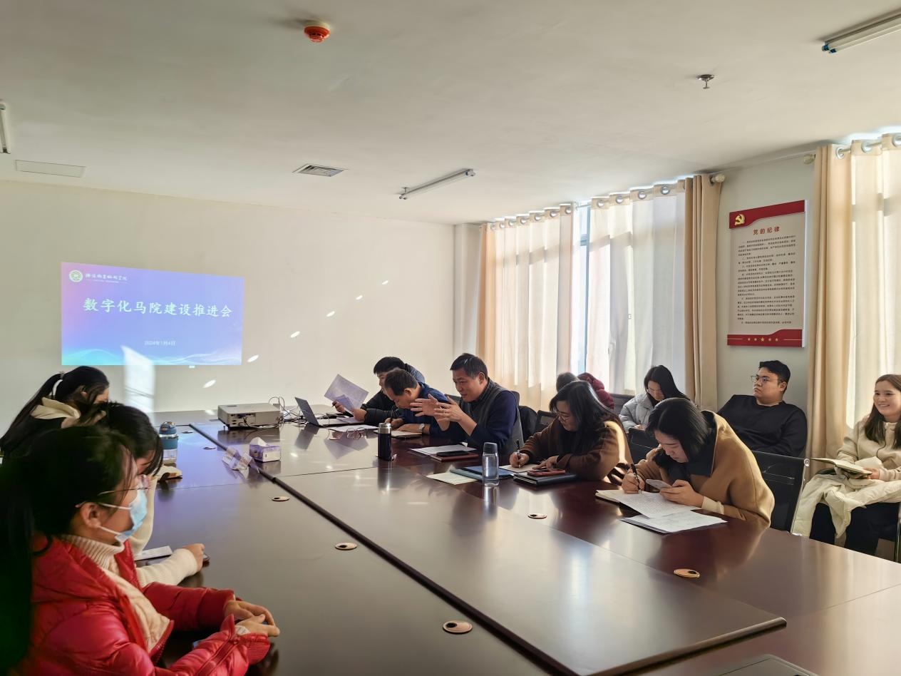 为深入学习贯彻习近平新时代中国特色社会主义思想,贯彻落实习近平总书记在学校思想政治理论课教师座谈会上的重要讲话精神、《关于加强新时代马克思主义学院建设的意见》《关于深化新时代学校思想政治理论课改革创新的若干意见》等重要文件精神,1月4日,马克思主义学院召开数字马院建设座谈会,院长闫文辉、副院长张冰洋、孙小利以及全体无课教师参加了此次座谈会。