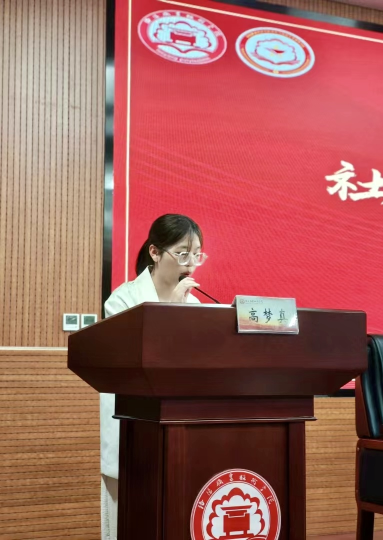 大会第七项,学生干部代表高梦真发言,她号召学员们要信仰真理,坚定信念,志存高远,敢于有梦,勤于学习,勇于实践,努力成为一个真正的马克思主义者,将马克思主义作为穷尽一生的追求,刻苦学习本领、努力工作实践,为成为一名优秀的“青年马克思主义者”而不懈努力。